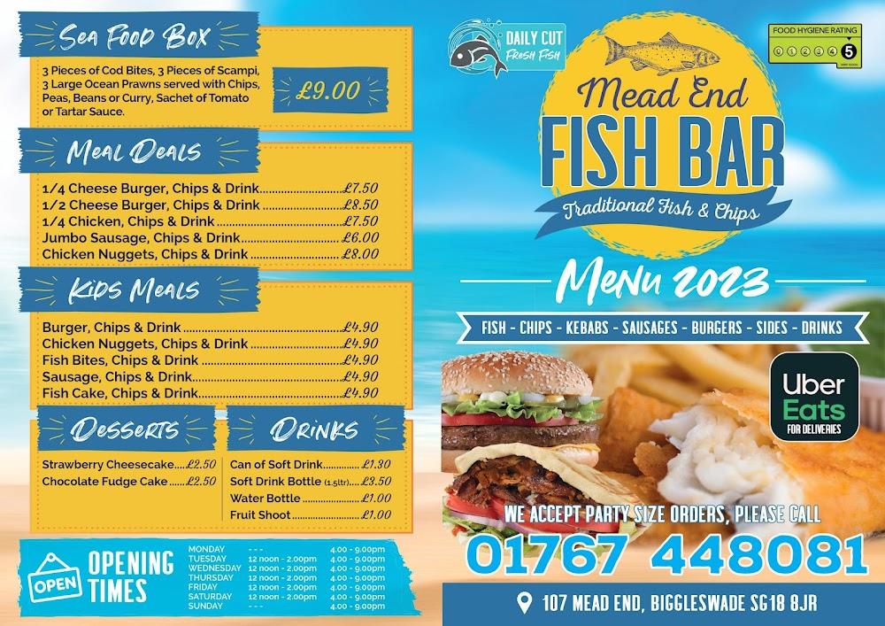 Mead End Fish Bar is a beloved fixture in the heart of Biggleswade. Situated at 107 Mead End, it’s hard to miss this busy hub of taste. Open daily, this casual eatery welcomes both locals and visitors, providing a cozy spot to enjoy delicious food. Parking is hassle-free, making it easy for everyone, including those with mobility challenges, to drop by. The warm atmosphere invites families to enjoy meals together or for individuals to grab a quick bite during their busy day. The accessibility features prioritize comfort, ensuring that anyone can come in and relish a meal. Whether you’re a Biggleswade regular or just passing through, the inviting nature of Mead End Fish Bar makes it a must-visit location for satisfying those fish and chip cravings.